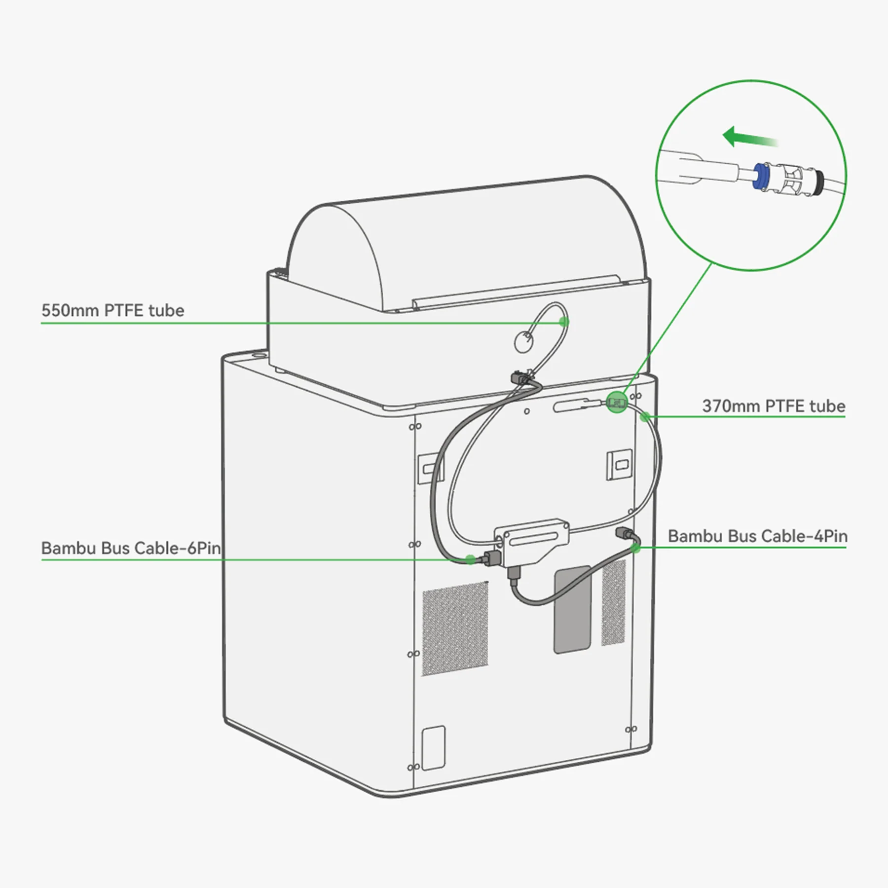 The filament buffer is an accessory that is required in combination with the AMS device. Its function is to provide a buffering action for the filaments. The interface is a 4-pin cable with 3 mm pitch and input terminal, a 6-pin cable with 3 mm pitch and output terminal.