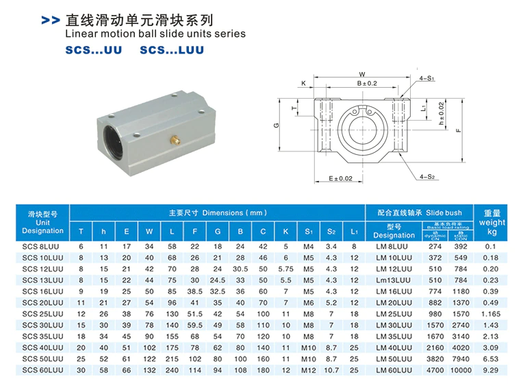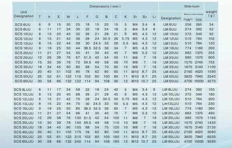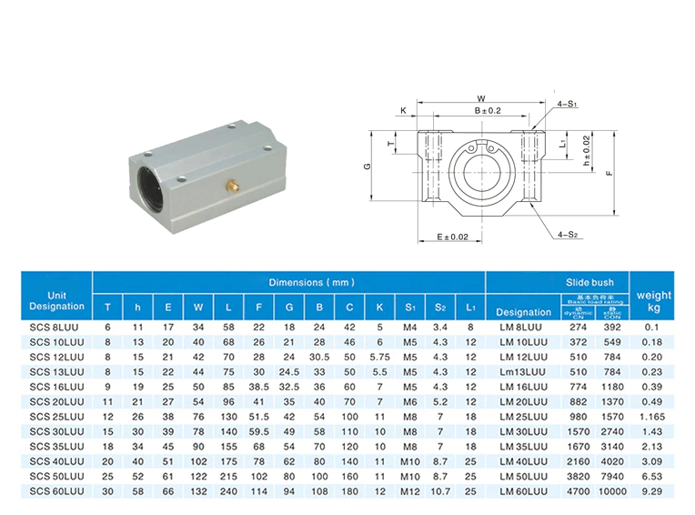 Linear ball bearing type with grip SCS8UU/SCS10UU/SCS8LUU