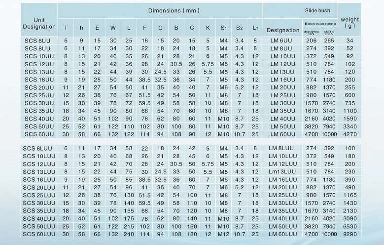 Линеен сачмен лагер тип със захват SCS8UU/SCS10UU/SCS8LUU