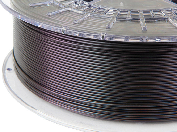 The filament is wound on a transparent spool. Each spool contains information on the material type, diameter and recommended printing temperature. The filament is vacuum packed with a moisture absorber. All product is packaged in the original Spectrum Filaments packaging.