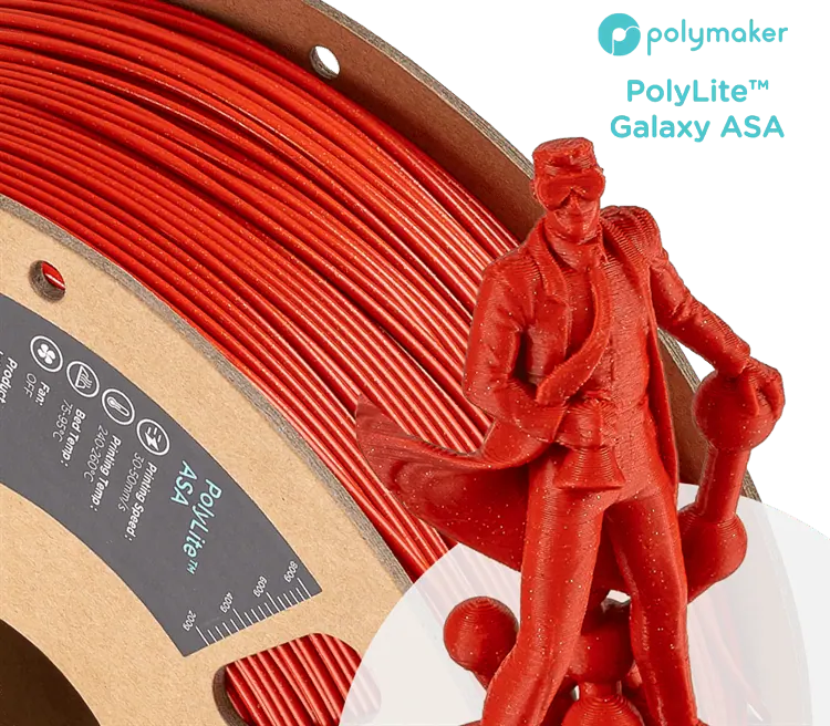 • Uncompromising Quality – With Polymaker’s industry-leading quality control process and rigorous in-house testing, you can be confident that PolyLite™ Galaxy ASA will produce beautiful, reliable and accurate printed parts.