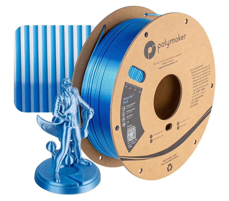 • Uncompromising quality – PolyLite™ PLA Silk is a PLA blend made with the highest quality ingredients, including Ingeo® from Natureworks. Natureworks is a leading US-based global supplier of biopolymers with a portfolio of high-quality PLA feedstocks made from rapidly renewable plant resources. Combining Polymakers’ innovative R&D technologies, blending and extrusion systems with Natureworks’ Ingeo® resins yields a reliable 3D printing filament for printing beautiful and accurate models