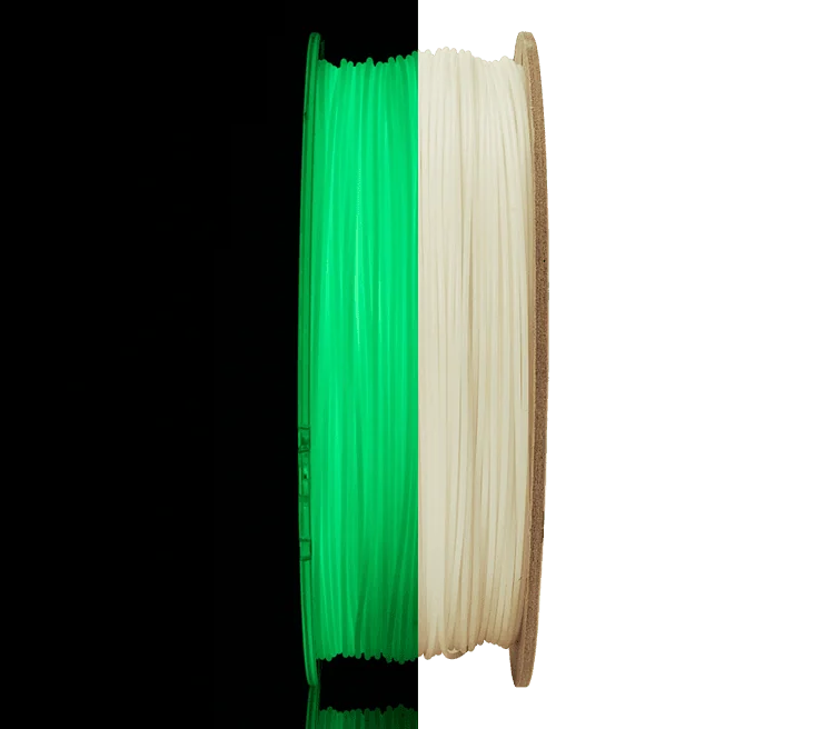 PolyLite™ Glow in the dark PLA is a special effect PLA material designed for printing fun and glowing 3D prints. Glow-in-the-dark PLA materials offer similar printer compatibility but require additional printing considerations, such as using a hardened steel nozzle to prevent excessive printer wear.
