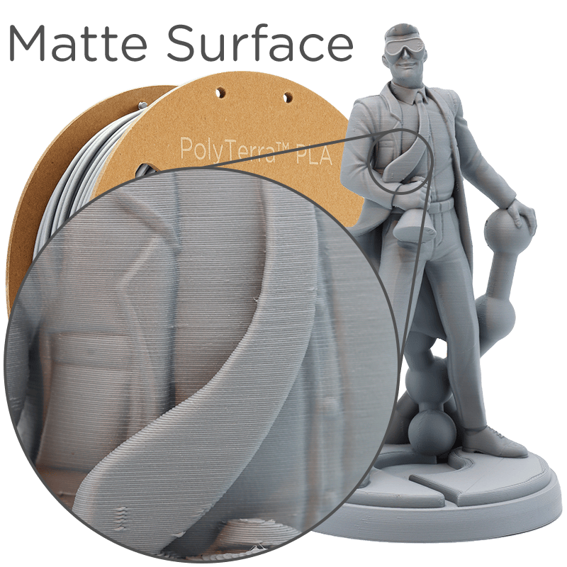 Featuring a wide printing temperature range of 190-230°C, PolyTerra™ . It can plug and run on any extrusion-based 3D printer. The surface finish of the 3D printed parts is uniquely matte, which hides the layer lines, even when printing with a large layer height.
