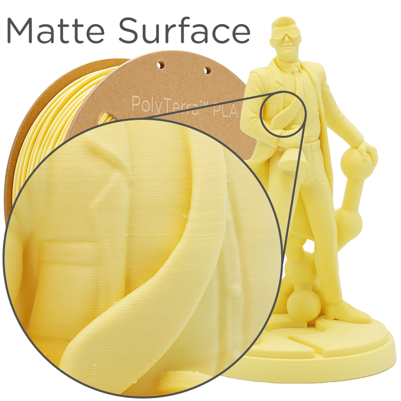 Featuring a wide printing temperature range of 190-230°C, PolyTerra™ . It can plug and run on any extrusion-based 3D printer. The surface finish of the 3D printed parts is uniquely matte, which hides the layer lines, even when printing with a large layer height.