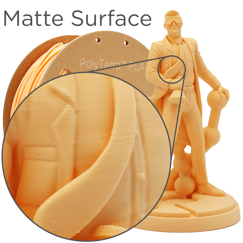 Featuring a wide printing temperature range of 190-230°C, PolyTerra™ . It can plug and run on any extrusion-based 3D printer. The surface finish of the 3D printed parts is uniquely matte, which hides the layer lines, even when printing with a large layer height.