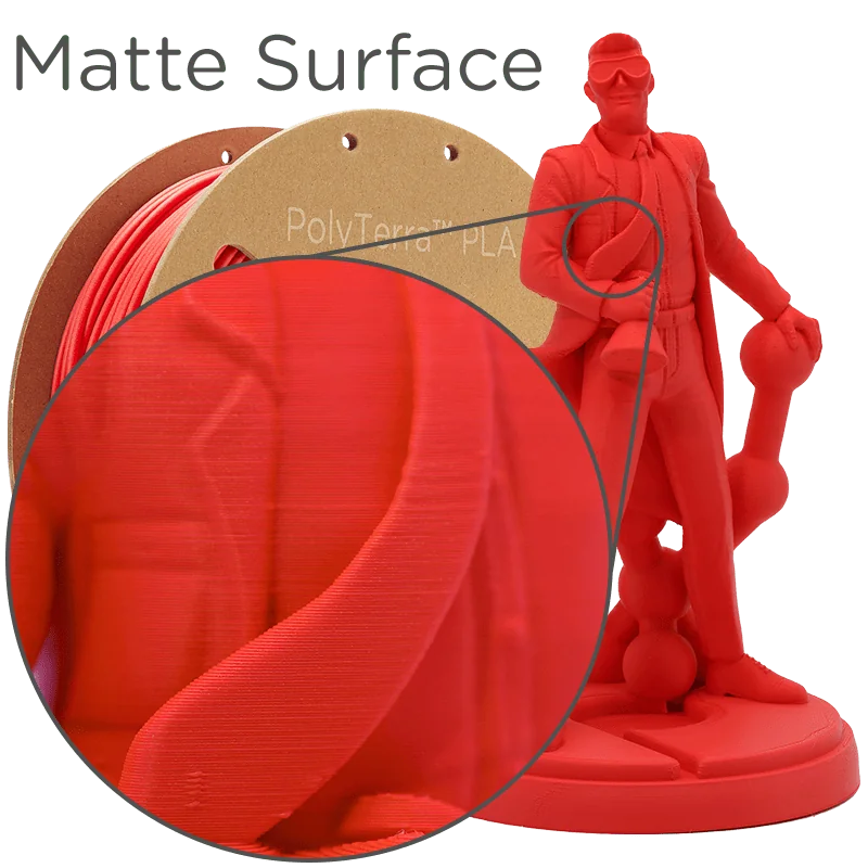 Featuring a wide printing temperature range of 190-230°C, PolyTerra™ . It can plug and run on any extrusion-based 3D printer. The surface finish of the 3D printed parts is uniquely matte, which hides the layer lines, even when printing with a large layer height.