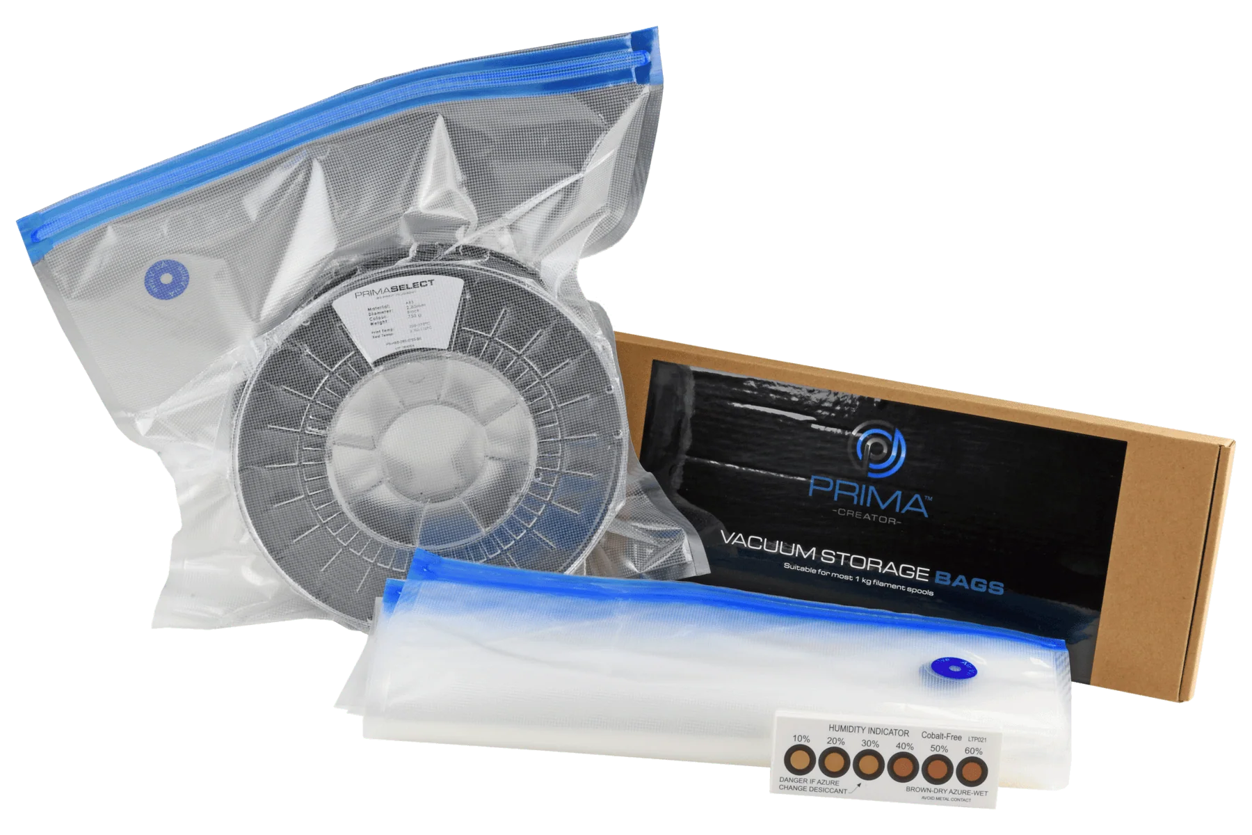 Properly storing your filaments in a sealed and dry condition will help extend their shelf life and ensure that the quality of your parts will always be the best possible.